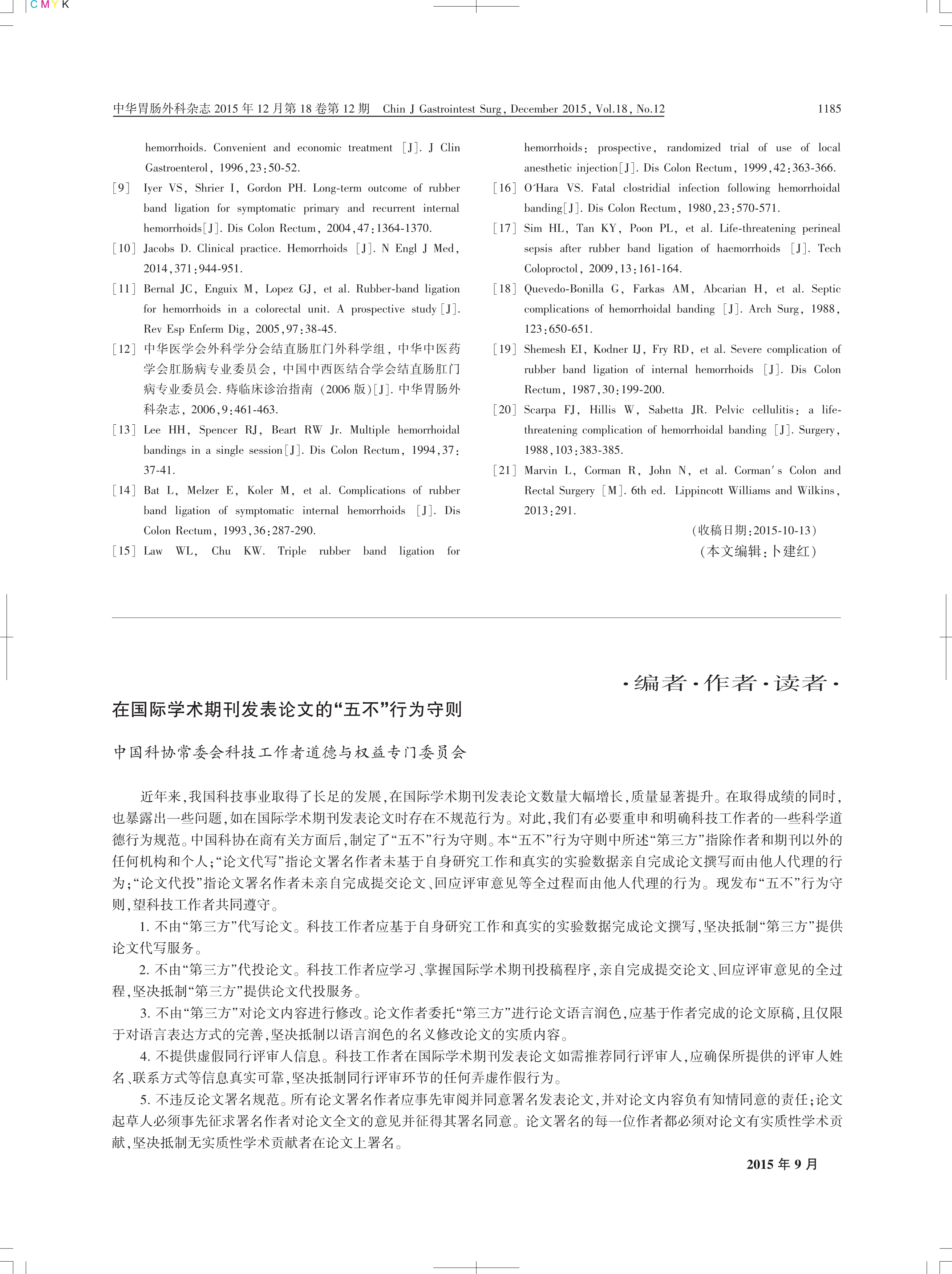 痔套扎治療中國專家共識(2015版)