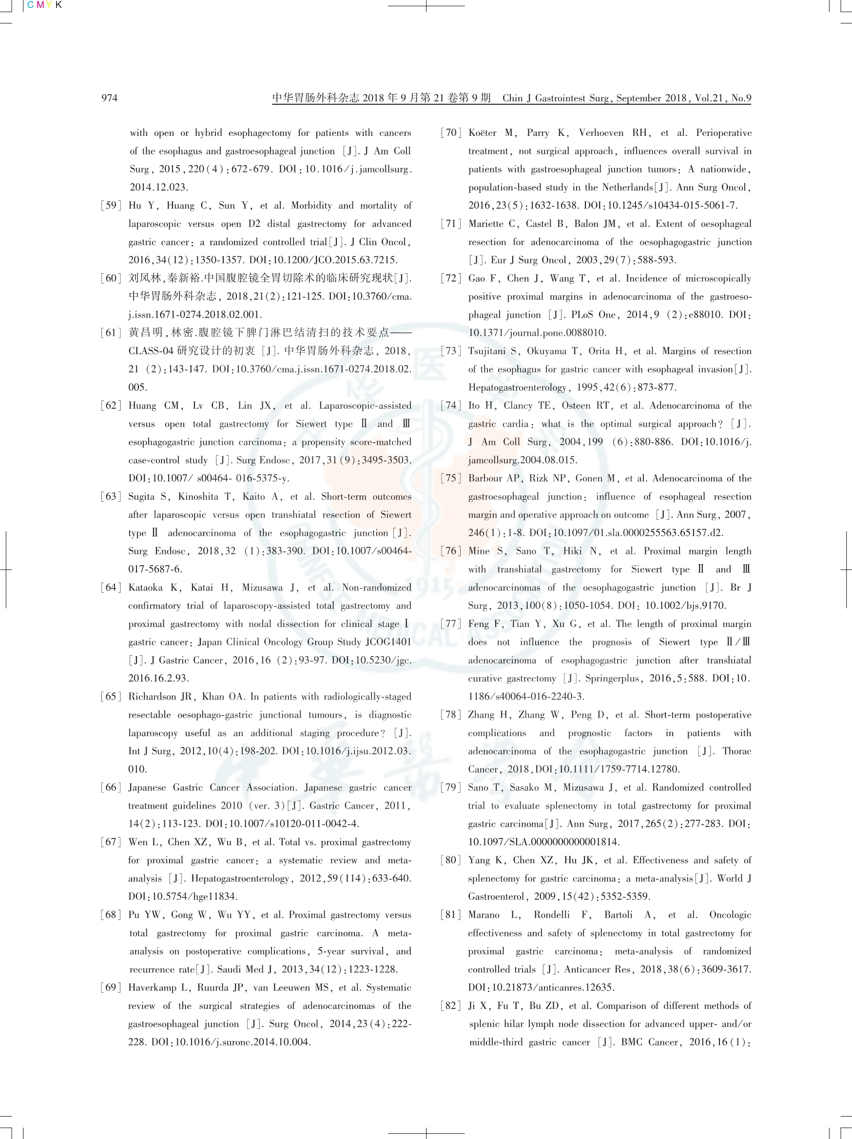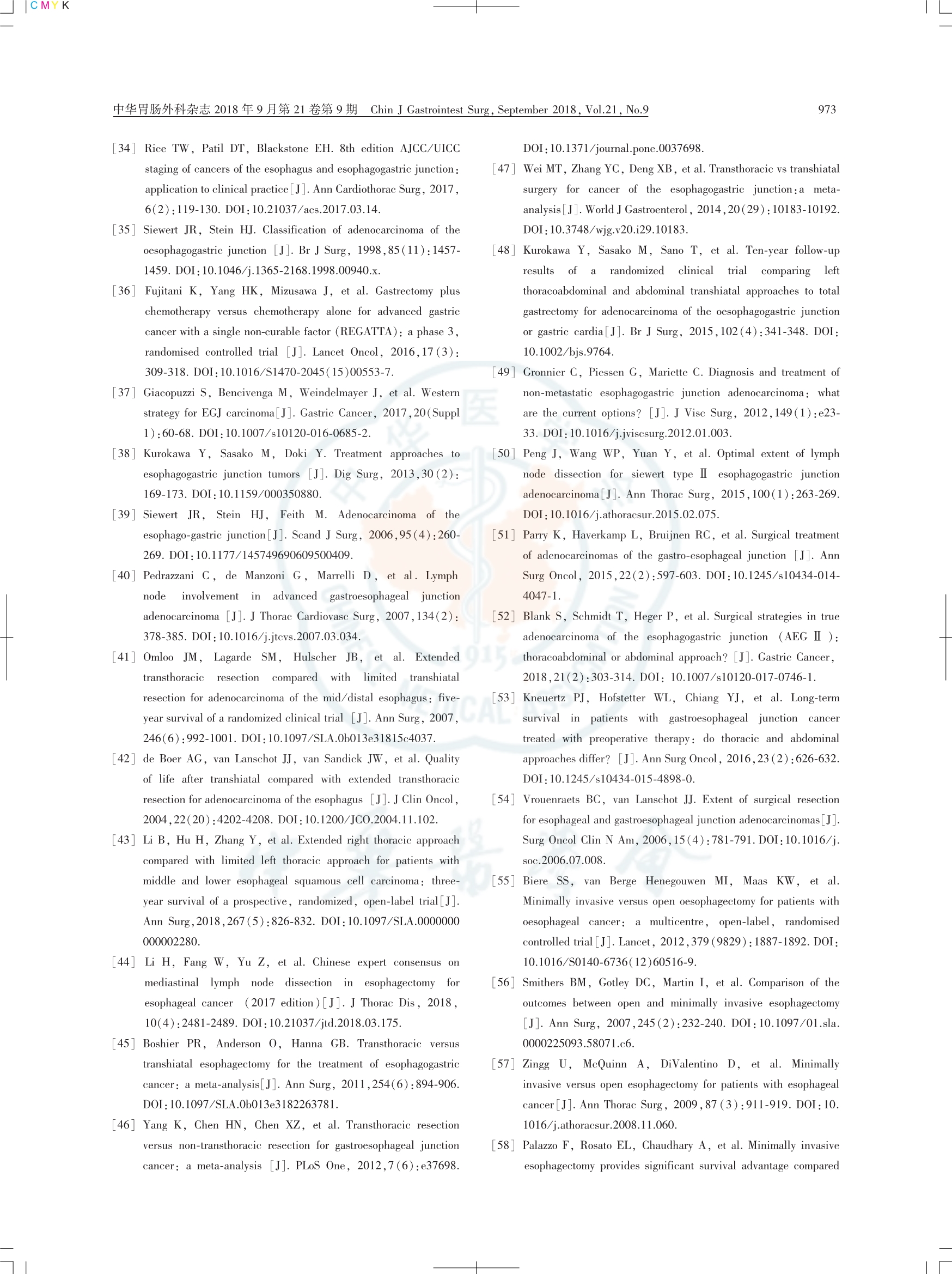 食管胃結(jié)合部腺癌外科治療中國專家共識(shí)(2018版)